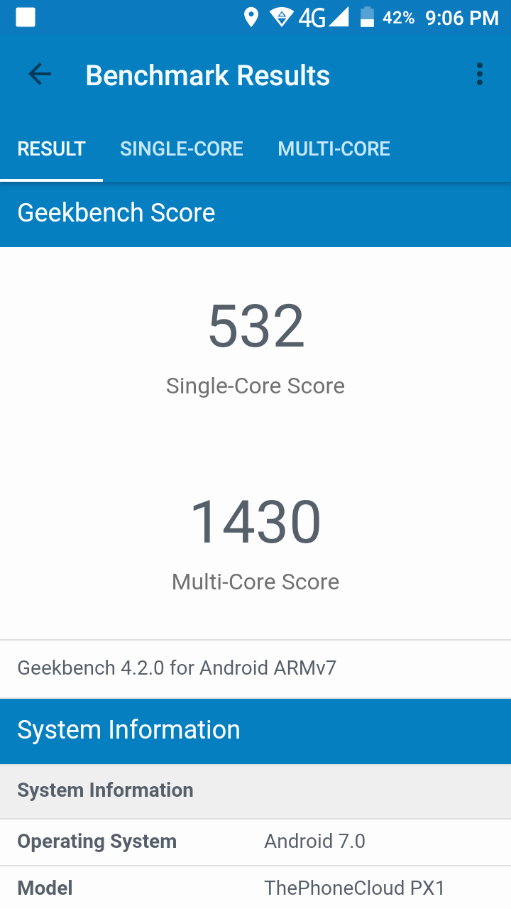 I thought I’d run a Geekbench 4 benchmark, just to see the results, and they were pretty much where I expected them to be. It’s not a very powerful phone, at all compared to other £200 handsets on the market. The Honor 7X we recently looked at smashed this out of the park for example, as does something like a Moto G5. But if it’s a basic handset for scrolling your Facebook feed or updating your Instagram, it’s alright.
