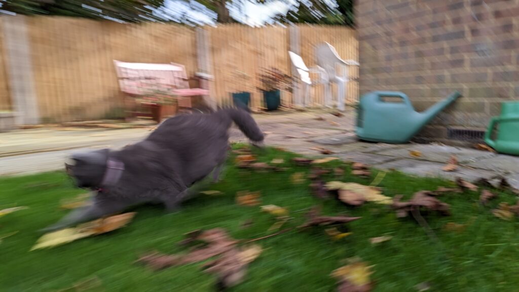 There’s also a lot to be said about the actual subject colour and the background the phone is trying to separate it from too. The car looks quite good above because it is massively contrasted. The red against the green and blue and grey really stands out. However, when my neighbour’s cat came to visit, I tried it again, getting the cat to chase a toy around the garden, but because the cat is grey, and the background was darker, the AI of the phone couldn’t really differentiate between subject and background. So while yes, this is a really cool feature with the new Google Pixel 7 Pro’s camera, it does really depend on the speed of the subject and the colour between the subject and background. Unless I’m just a really bad photographer and my framing skills just aren’t that good.