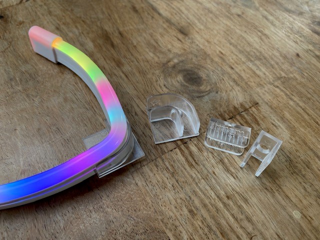 The strip is flexible but it’s firm, so to keep the shape you’ve created, plastic mounts are needed. You can screw them into the wall, I think that’s a better option than the 3M stickers, they leave a terrible mark on your wall if you can even get them off. Is 2m enough? Maybe, maybe not, and unfortunately everything is hardwired, so you can’t extend this strip at a later date if you wanted to. Hardwired, I thought about hiding the cable in the wall and fishing it down to the plug but with the controller and plug, that’s not happening without alot of mess.