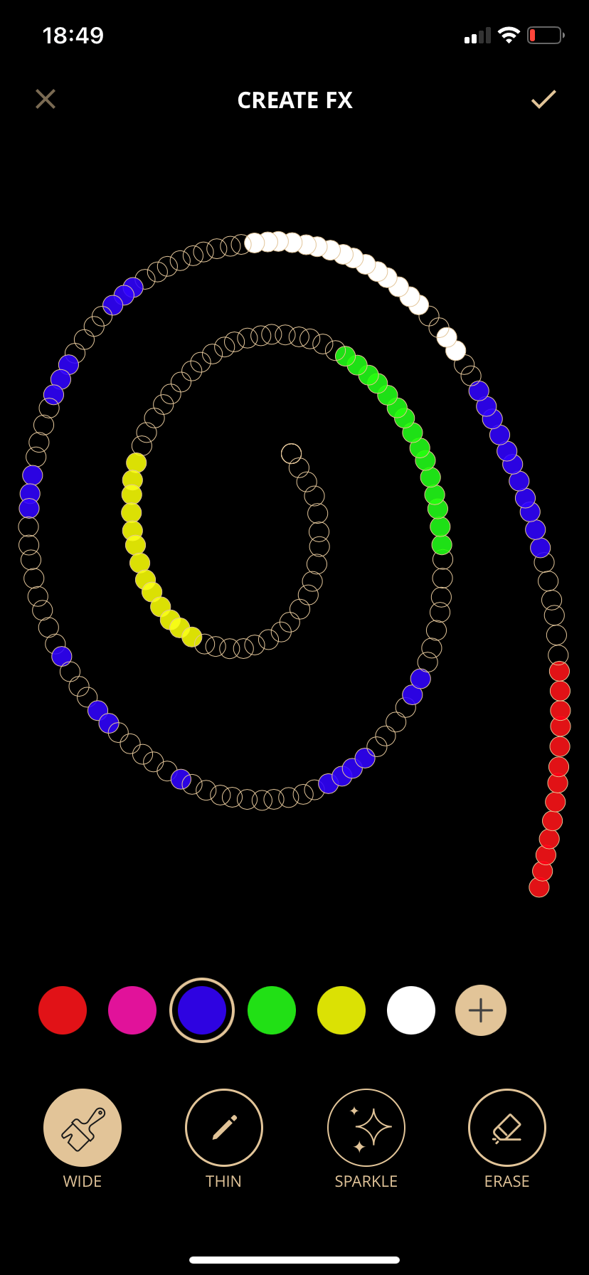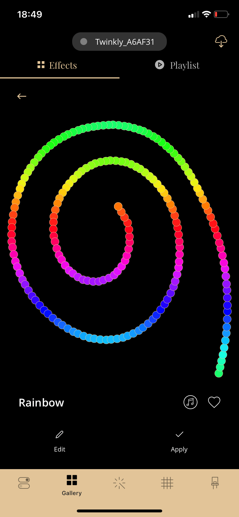 Control-wise, you can adjust the brightness, set a time, or turn the strip on/off. Within the gallery, there are default effects, they’re animated within the app, so you get a preview on your smart device but click on one, hit apply and the change is instantaneous on the strip. If that didn’t give you enough options, you can create your own patterns too. The customisation is quite in-depth and I love it. That photo you took earlier, well as the app recorded those controllable points, you’re able to select those individuals with your finger, with different colors, to make whatever you wanted. It’s really fun and it’s the most customisation I’ve seen in a very long time. I’ve also seen on the Twinkly website that you can have multiple strips, synced, for even more customisation.